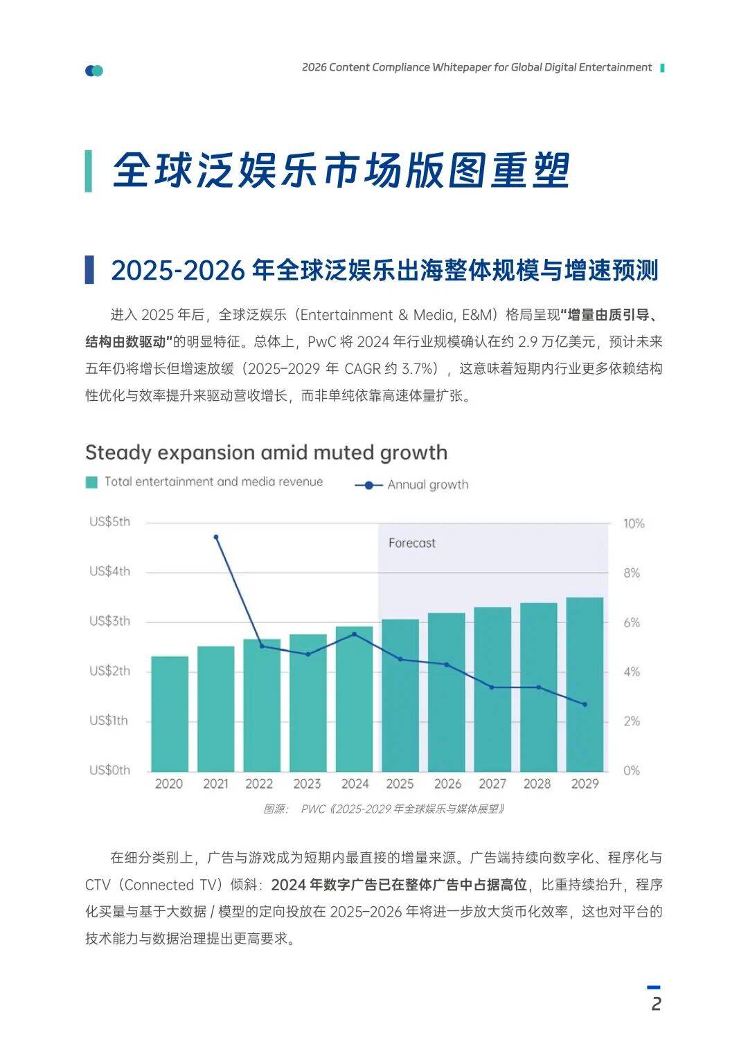 面对日益复杂的全球监管环境,数美科技携手出海权威媒体平台扬帆出海,重磅推出《2026泛娱乐出海内容合规白皮书》(以下简称《白皮书》)。